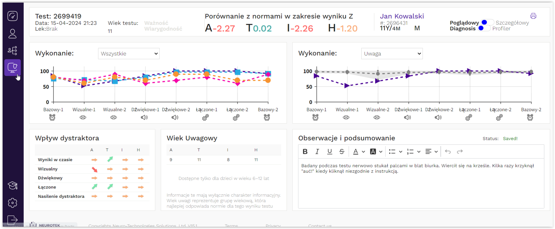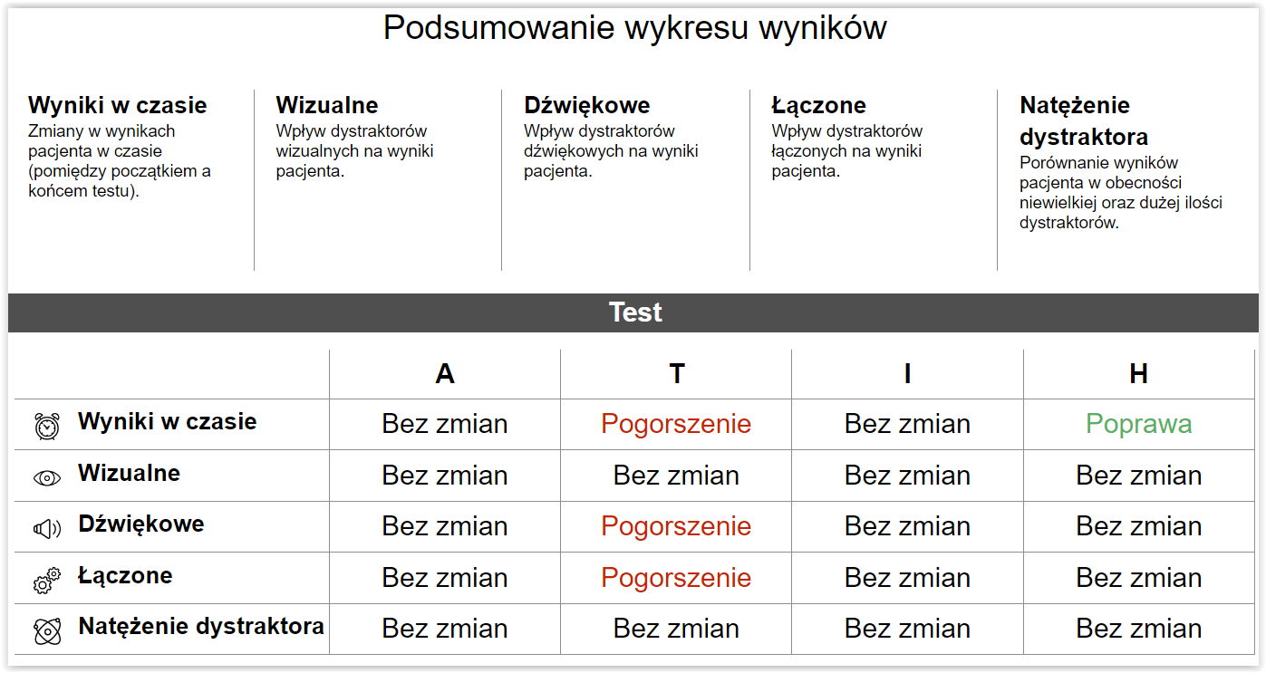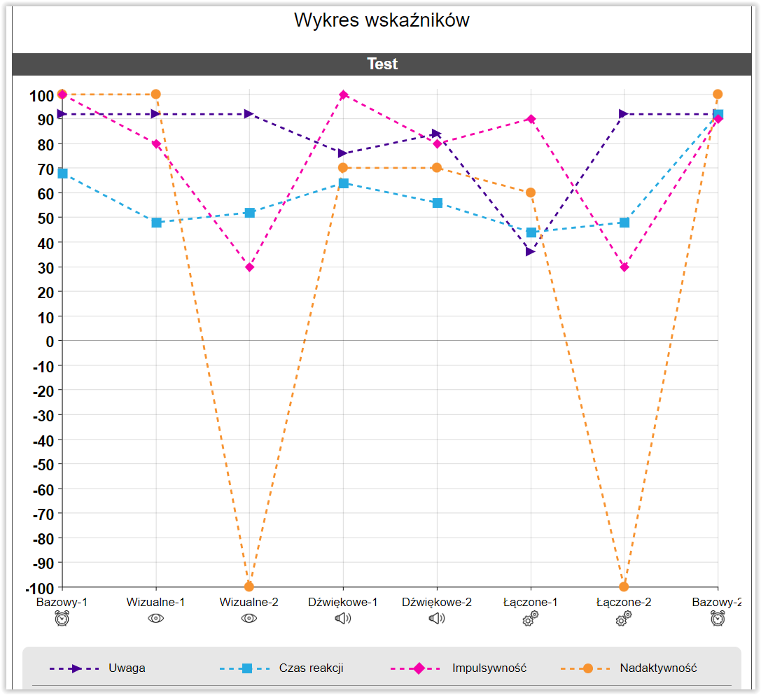 Te informacje pozwolą ocenić zdolność badanego do utrzymania wyniku w czasie oraz ewentualny wpływ poszczególnych dystraktorów z otoczenia badanego – co w naturalny sposób ułatwi nam przykładowo generowanie zaleceń dla badanego.