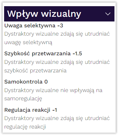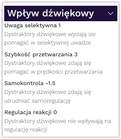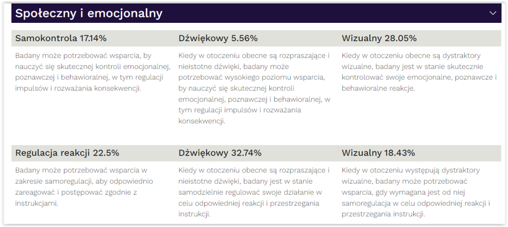 Dostarczanie zrozumiałych i praktycznych danych. MOXO Profiler, jako pierwszy, oferuje profesjonalistom dane o koncentracji uwagi, przetwarzaniu informacji oraz regulacji społeczno-emocjonalnej, w tym o wpływie dystraktorów słuchowych i wzrokowych na te wskaźniki. Wszystko to dostępne jest w jednym miejscu na podstawie jednego testu, którego wykonanie zajmuje niecałe 30 minut.